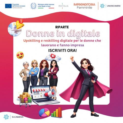 L’iniziativa si inserisce nel Piano Nazionale per l’imprenditoria femminile, promosso dal Ministero delle Imprese e del Made in Italy e realizzato da Invitalia in collaborazione con Unioncamere, a valere su risorse del PNRR. Il percorso nasce con l’obiettivo di supportare le partecipanti nell’acquisizione di competenze digitali sempre più centrali per la crescita professionale e imprenditoriale, con particolare attenzione alle opportunità offerte dalle tecnologie digitali, alla comunicazione online e agli strumenti utili per rafforzare la presenza sul web.