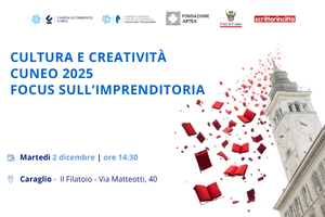La Camera di commercio organizza il convegno "Cultura e creatività Focus sulle imprese Cuneo 2025", in programma martedì 2 dicembre alle ore 14:30 presso il Filatoio di Caraglio (via Matteotti, 40).
