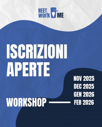 Sono aperte le iscrizioni per i Workshop gratuiti di NEETworkME, un percorso formativo completamente gratuito destinato ai giovani NEET di Messina e Provincia, focalizzato su settori ad alto potenziale del territorio.