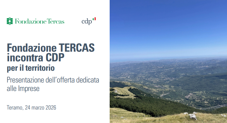 La Fondazione Tercas, in collaborazione con Cassa Depositi e Prestiti, ha organizzato un incontro 24 marzo 2026 dalle ore 10:30 alle ore 12:30 presso l’Università degli Studi di Teramo.