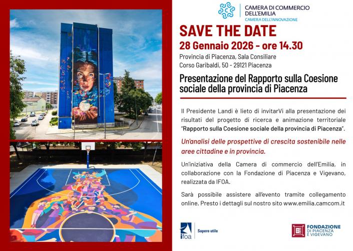 Mercoledì 28 gennaio 2026, a partire dalle ore 14.30 presso la sala Consiliare dell'Amministrazione provinciale di Piacenza (Corso Garibaldi, n. 50) sarà presentato il I Rapporto sulla Coesione sociale per la provincia di Piacenza.