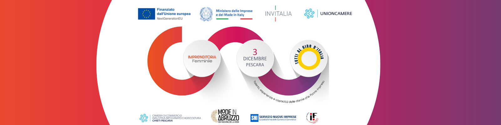 Lo scorso 3 dicembre, si è tenuto in Abruzzo, presso l'Aurum di Pescara, la Tappa regionale del Giro d’Italia delle Donne che fanno Impresa, il Roadshow promosso da Unioncamere con il diretto coinvolgimento dei Comitati per l’Imprenditoria Femminile, ora inserito nel “Piano Nazionale dell’Imprenditoria Femminile”, progetto del Ministero delle Imprese e del Made in Italy e finanziato dall’Unione Europea con le risorse del Next Generation EU che Invitalia – soggetto gestore – realizzato in collaborazione con Unioncamere.
