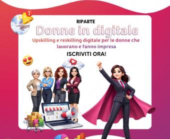Donne in digitale è un percorso formativo promosso da Unioncamere per la diffusione della cultura e la formazione imprenditoriale femminile, percorso che si inserisce nell’ambito del Piano nazionale per la promozione dell'imprenditorialità femminile promosso dal Ministero delle Imprese e del Made in Italy e realizzato da Invitalia e Unioncamere a valere sul “Fondo a sostegno dell’impresa femminile”.