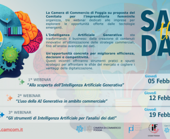 Terzo appuntamento del ciclo di webinar sull'IA generativa dedicati alle imprese, organizzati dalla Camera di Commercio di Foggia, su proposta del Comitato per l’Imprenditoria Femminile, in collaborazione con il Punto Impresa Digitale e Dintec.