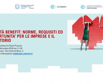 La Camera di commercio Chieti Pescara, nell’ambito del programma nazionale di promozione delle Società Benefit promosso dal Ministero delle Imprese e del Made in Italy in collaborazione con Unioncamere, organizza un incontro di approfondimento in cui saranno approfonditi i vantaggi per le aziende che scelgono questo modello – dalla reputazione al posizionamento competitivo, dall’accesso a nuovi mercati ai riflessi sul territorio – evidenziando come l’evoluzione normativa e la crescente attenzione alla responsabilità d’impresa stiano rendendo sempre più strategico un approccio orientato al valore condiviso.